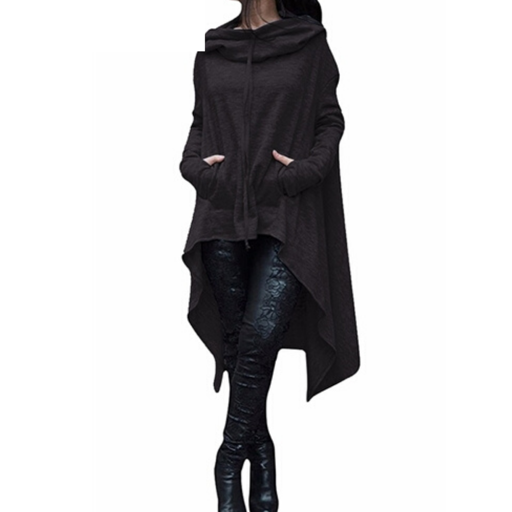 You'll feel so comfortable and warm in this lonf hooded pullover sweater.